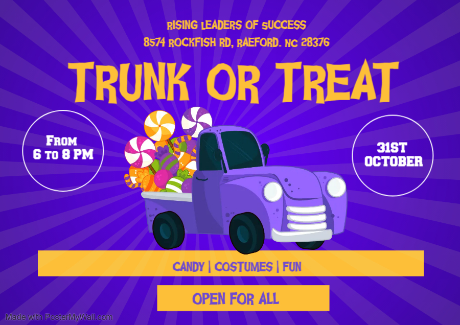 Join our center as we celebrate Fall with our Fall trunk or treat on Oct. 31st, 2025, from 6 pm to 8 pm. Please see our flyer below for more details. We hope to see you there!